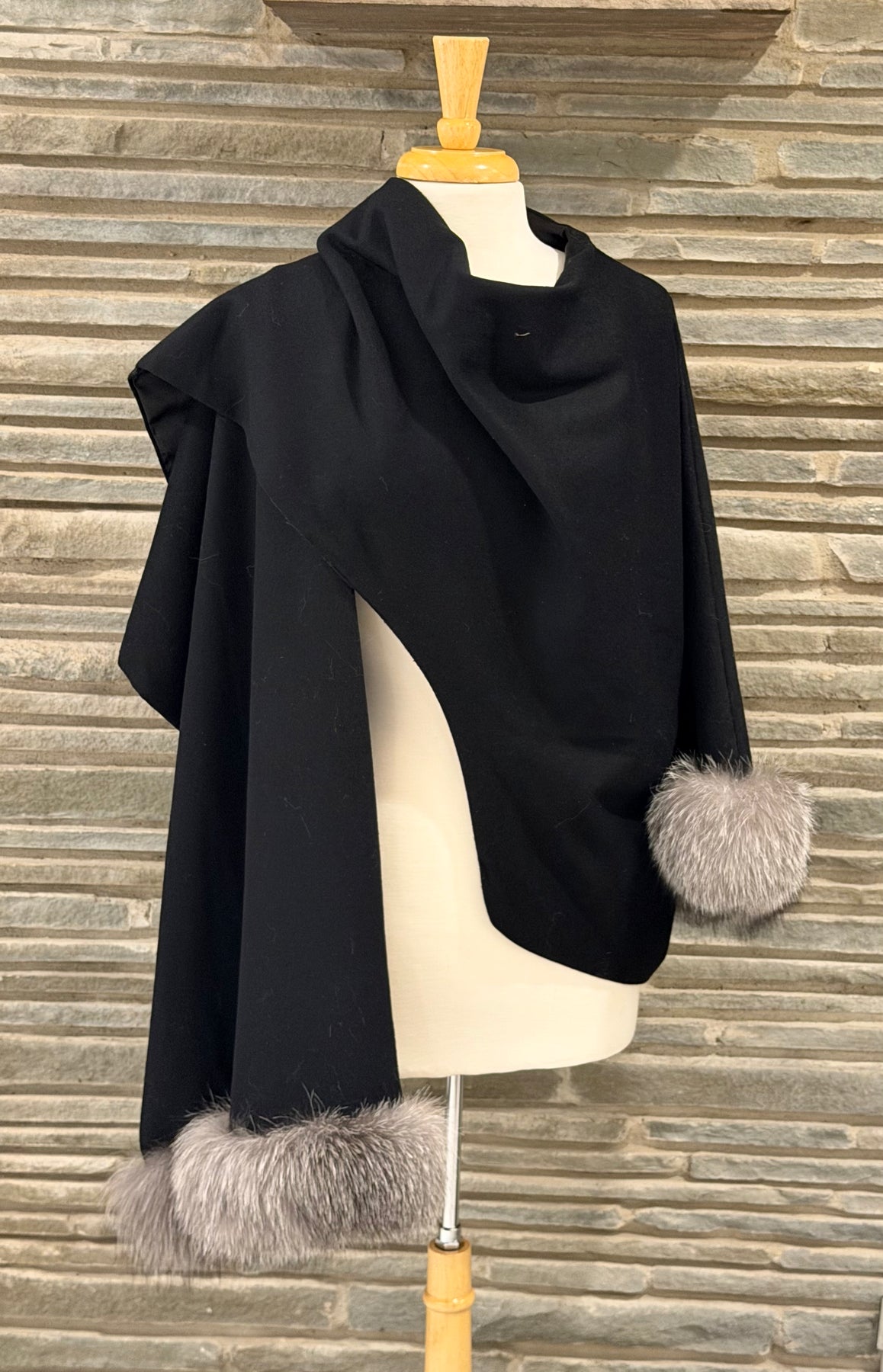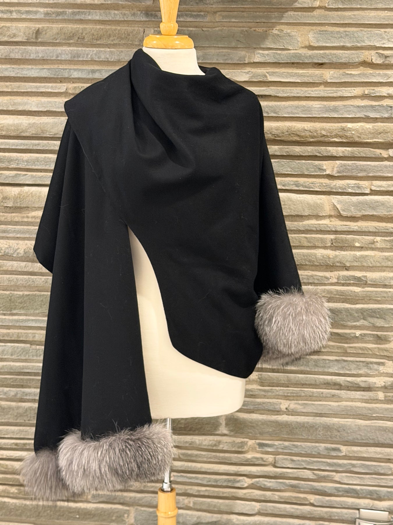 Etria One Arm Wrap in Loro Piana 100 % Cashmere with Indigo Fox Fur